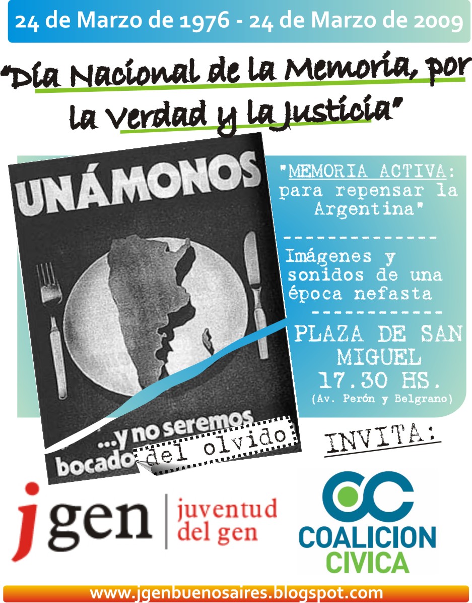 LOS JÓVENES DE GENERACIÓN PARA UN ENCUENTRO NACIONAL (GEN), nos afirmamos en la doctrina del radicalismo, pero también queremos ser la génesis de un nuevo proyecto de país, desde allí, con nuestra propia identidad, hemos formado parte de la Coalición Cívica, instrumento plural que consideramos necesario consolidar, para ahondar las coincidencias con otras fuerzas políticas, sociales, culturales y económicas a las que las animen principios y valores afines, proponiéndonos ser, una alternativa política que contenga a todos los JOVENES que compartan los mismos ideales y propósitos, que aquí se consignan.